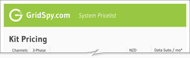Our standard kit pricing, and more. All elements of a GridSpy solution are priced in here.